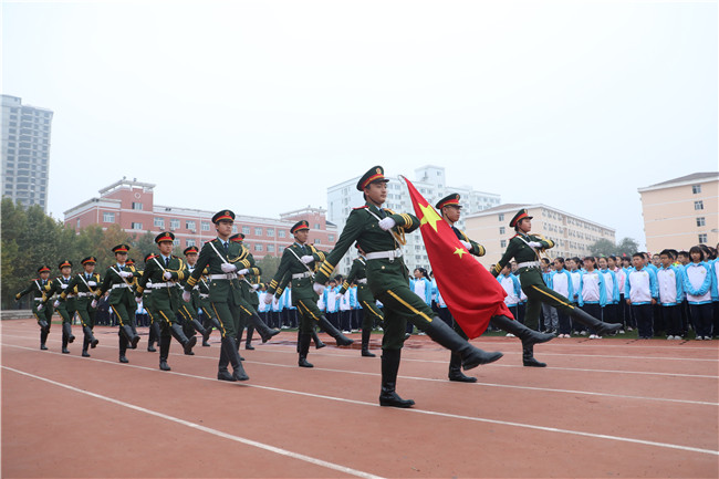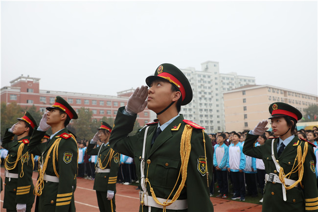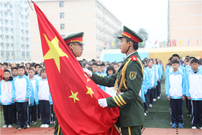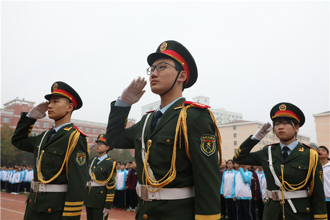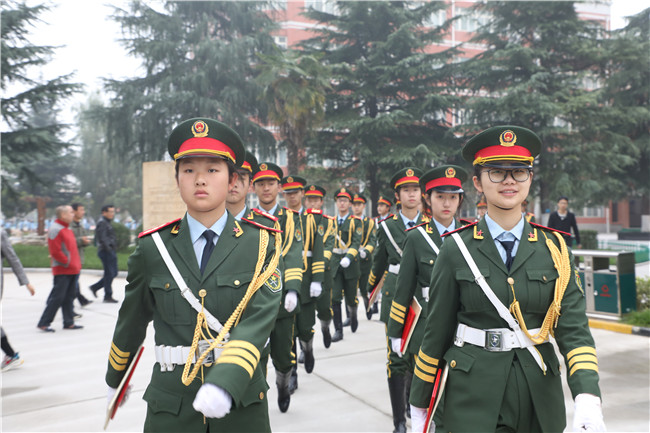 2019年10月21日早晨7:40,我校第八届国旗护卫队队员在全校师生的瞩目下,踏着铿锵有力的步伐向主席台迈进。在雄壮的义勇军进行曲中,第八届国旗护卫队的队员们出色地完成了任期中的最后一次护旗、升旗任务,走过了不平凡而又精彩的一年,将这一光荣使命传递给了下一届国旗护卫队。