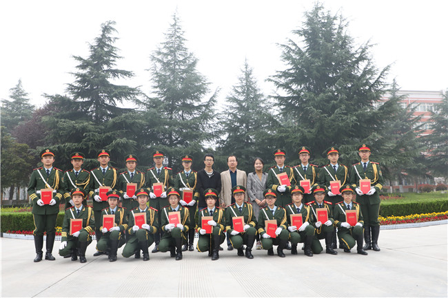 为表彰先进、树立典型,校团委特表彰第八届全体国旗护卫队员,并由校长王常劳、校党委书记韩党卫为国旗护卫队队员颁发荣誉证书和奖品。