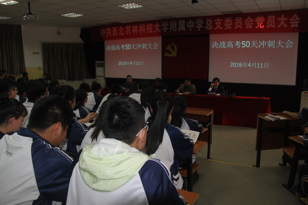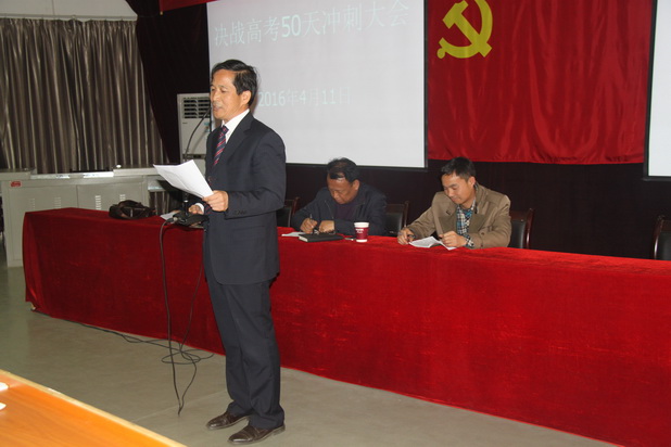 为鼓舞高三学生斗志,增强信心,缓解近期焦虑情绪,4月11日,我校在多功能厅召开决战高考冲刺大会。大会由年级组长张满户主持,高中教务主任王旭、政教副主任徐恒明、年级组长李憬波出席大会。