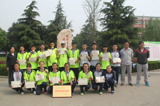 在本届运动会上,我校运动员奋勇拼搏,团结协作,展现了昂扬的斗志和良好的精神风貌,取得了初中组团体总分第二名、高中组团体总分第二名的好成绩。其中,高中组获金牌2枚,银牌8枚,铜牌9枚;初中组摘得金牌2枚,银牌7枚,铜牌9枚。在乒乓球比赛中,高中组、初中组的男子、女子冠军被我校包揽。弓强获初中男子组冠军,仲卓然获初中女子组冠军;殷文仟获初中男子组亚军。琚大江获高中男子组冠军,李思睿获高中女子组冠军;张罡睿获高中男子组亚军,郭锦拧获高中女子组亚军。另有3位同学打破3项区运会纪录,许曼打破了高中女子1500米的纪录,闫武庆打破高中男子1500米纪录,杜雨革打破初中女子三项全能纪录。