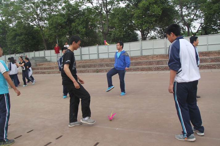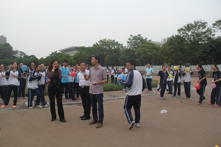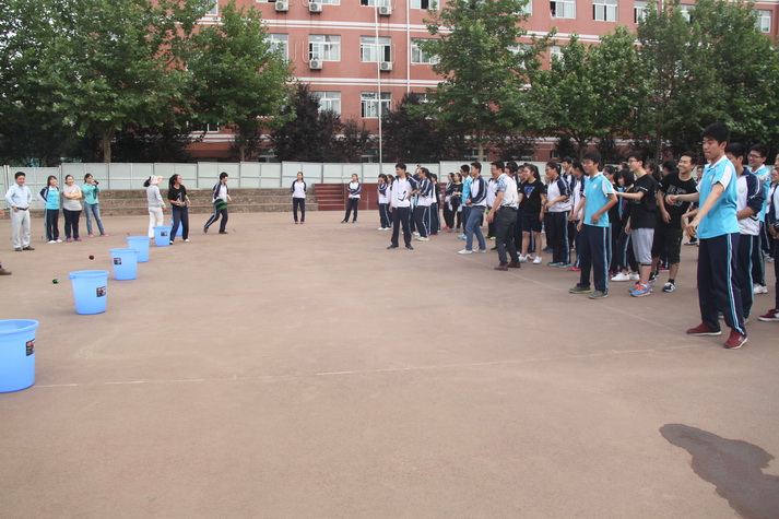 第七节课后高三师生准时在操场集合,先由担任裁判的学校体育组老师宣布活动规则以及比赛项目。有沙包掷准、吹气球、跳大绳、踢毽子、足球射小门、篮球运球等项目,一人可参加多项。