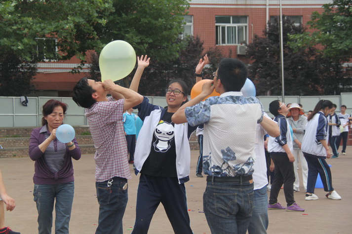 紧接着裁判员老师宣布比赛开始,整个操场便成了一片欢乐的海洋。沙包投中的欢快叫声,跳绳计数声,各项活动中同学的加油声,还有学生和老师一起比赛的笑声。最热闹的是吹气球,瞧大家一个个鼓起腮帮使劲吹气,气球渐渐变大,大家脸上的神色却也变得有些担心了,果然,只听“砰”的一声,气球吹爆了,大家都笑成一团。李筱英书记、韩党卫副校长、张书民副校长、王旭主任、徐恒明副主任等领导也都情不自禁的加入到学生活动的行列,吸引了众多学生的关注,他们和学生一起吹气球,比赛谁吹的更大,一起踩气球,一起欢笑。整个运动会始终在热烈欢快的气氛中进行。运动会结束,许多学生还意犹未尽,仍沉浸在活动带来的快乐当中。