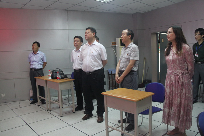 魏建锋一行首先视察了高考试卷保密室,然后前往我校考点监控室视察高考监控系统和语音播放系统的运行准备情况,并详细了解了考场设置、听力设备、网络控制和考场周边环境等。在听完我校负责人的汇报后,魏建锋指出,高考准备工作一定要仔细考虑每个细节,一要高度重视,严格按照高考的操作流程规范操作,确保整个高考的顺利进行;二要以人为本,一定要为考生着想,方便考生,围绕为服务考生做好各项工作,为考生创造一个良好的考试环境。