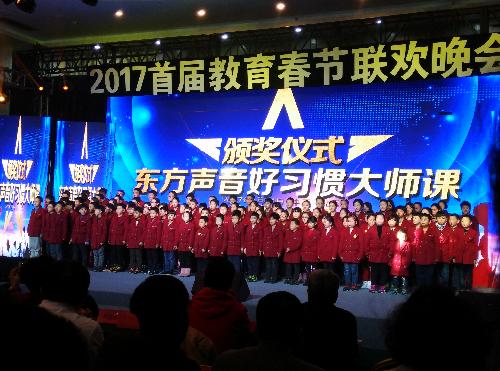 下午孩子们自信的登上2017教育春晚的舞台,他们精彩的表演赢得全场雷鸣般的掌声。中国教育协会主席王光宏,联合国绿色经济发展联盟组织秘书长安学君现场为孩子们颁发了荣誉证书。此次春晚分为四个篇章,第一篇章 希望的田野---儿童梦;第二篇章 追风的季节----少年梦;第三篇章 青春的记忆-----青春梦;第四篇章 生命的价值-----中国梦。晚会中,无论是舞蹈节目,还是相声节目,都体现出孩子们优秀的特质。更有特邀嘉宾,明星大咖助兴表演,一次次将晚会推向高潮。