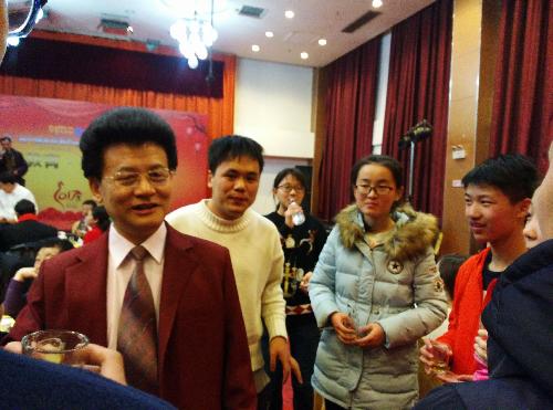 春晚晚宴时间到了,孩子们欢呼雀跃的来到晚宴现场,再次见到了几天以来为他们授课的大师以及喜欢的明星。晚宴时,大师、明星以及领导们亲切的来到孩子们这一桌,向孩子们敬酒和问候:你们是祖国的花朵,祖国的接班人,好样的,加油!孩子表现得有礼仪,有修养,自信大方。孩子们以茶代酒,去向这两天来为他们讲课的大师孙家才敬酒,幽默风趣的孙老师亲切的和孩子们交谈,鼓励孩子好好学习,努力拼搏,将来做祖国的栋梁之才。