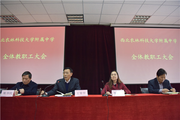 3月8日,附中全体教职工在多功能厅召开大会。会上,王常劳校长、李筱英书记等校领导强调了严格遵守党的政治纪律的重要性,并围绕示范校建设工作作了总结和要求。