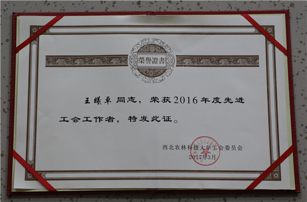 在3月14日召开的西北农林科技大学工会第三届工会委员会第二次全委会扩大会上我校工会被评为2016年工会工作先进集体,校工会委员王曦卓荣获工会工作先进个人。