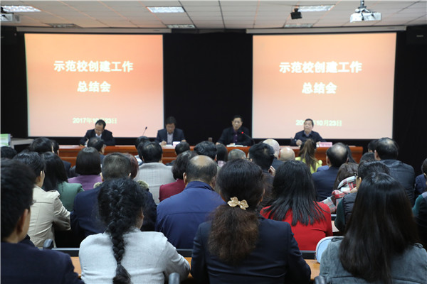 10月23日,我校在多功能厅召开示范校创建工作总结会。大会由王常劳校长主持,全体教职工参加。