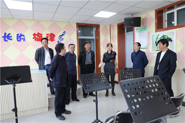 督导组一行在张书民副校长和寇建国主任的陪同下参观了我校校园及校史馆、实验室、心理咨询室、宣泄室、音乐室、音乐排练室等部室。督导组专家对我校的硬件建设高度肯定,认为我校校园环境优美,部室齐全、建设规格高。