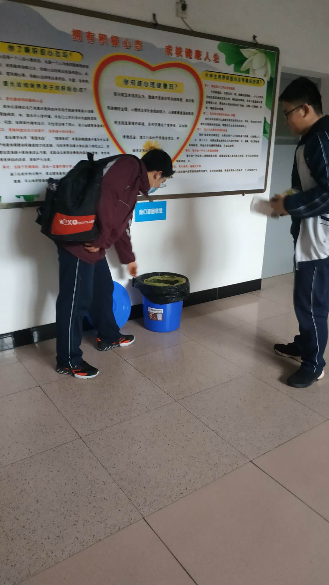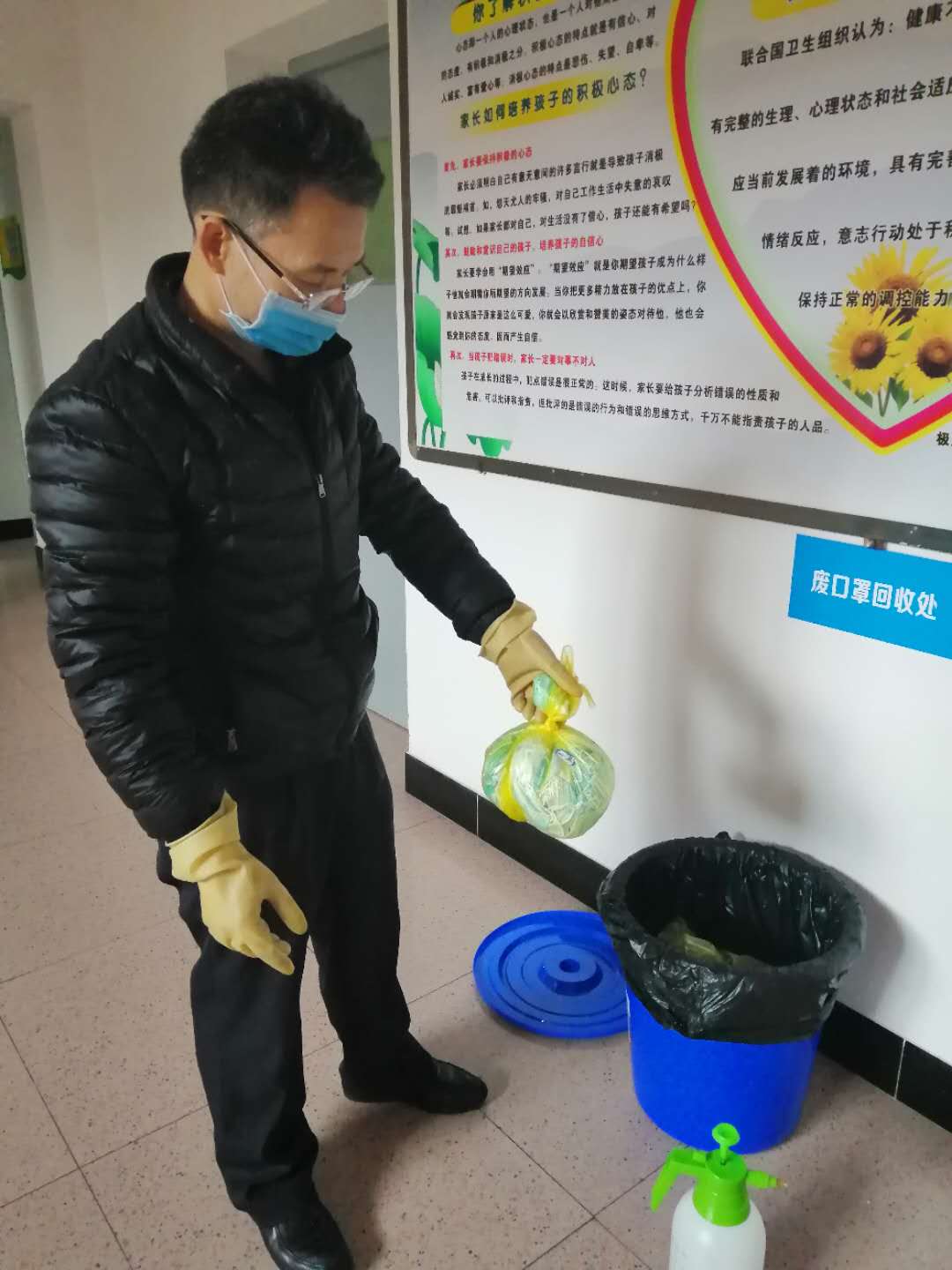 宿舍每天两次按时查宿,三次体温检测。早晨6点40在公寓楼门口安排3人一组测体温,其余2次均在中午、晚自习学生回宿舍查宿时进行测体温,确保不漏一人。落实常规消杀每日2次,消毒后30分钟通风制度,做好记录。指定专人每天将校园回收点的废口罩收集破损后,送公寓点封装,由环卫部门负责清运处理。