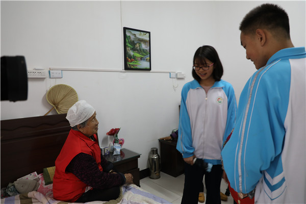 捐赠仪式后,我校师生看望了福利院的老人。当老人看到学生们时,都亲热地拉起他们的手问长问短。现场气氛愉快温馨,欢声笑语不断。