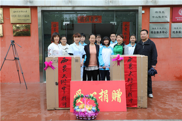4月23日,我校初一年级5名学生代表在方凯副主任、杨亚利、何米娜老师的带领下来到杨凌福利院,向福利院捐赠了两台大容量全自动洗衣机等价值8000余元的爱心物品。