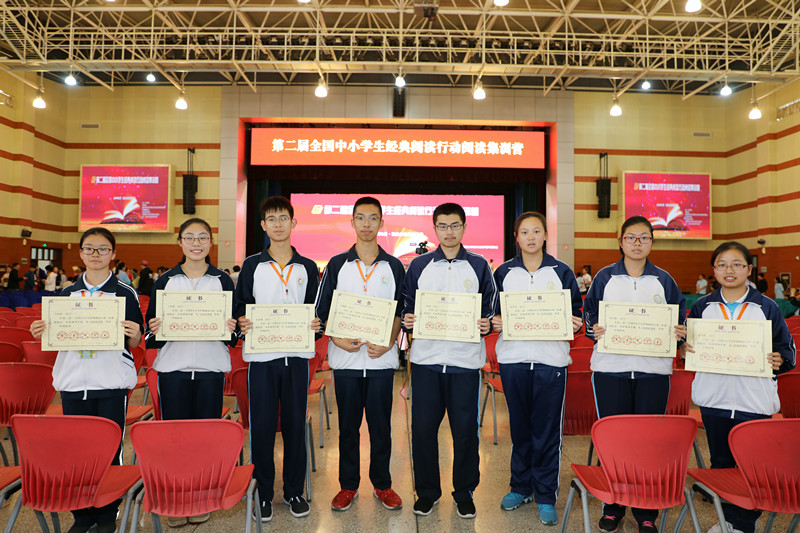 在第二届“全国中小学生经典阅读行动”现场检测暨阅读集训营活动中,我校有八名学生获得国家级奖。其中国家级特等奖三人:高一1班刘佳怡、高二2班王彬尧、高二1班汤可妮;获得国家级一等奖两人:高一1班王靖滋、高二1班陈思若;获得国家级二等奖三人:高一1班任嘉豪、赵思翔、高二1班徐冰姿。