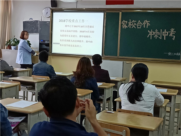 本次家长会由各班班主任精心准备,全体任课教师积极参与。主管初中部教学的张书民副校长等现场督查,教务主任王联科深入班级,耐心讲解。班主任向家长提出了对毕业班学生更应注意心理疏导减压,营造和谐家庭气氛,进行学习方法指导等建议。任课教师就近期学生的具体情况及练考中出现的问题与家长进行交流,建议家长应该做好孩子的督促与辅导工作。