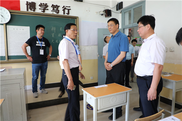 李九红及徐养福一行到我校听取了有关备考情况的汇报,实地查看了视频监控室、控制系统和考场,并现场对涉及高考的方方面面工作进行了详细安排部署。李九红指出,高考事关千家万户的切身利益和广大考生的前途命运,是牵动全社会的大事,各部门要高度重视高考工作,周密部署、加强检查,保障每一个细节工作落实到位,要为考生提供全方位优质服务,营造安全、有序、稳定、安静的良好考试环境,全力确保高考的顺利进行。