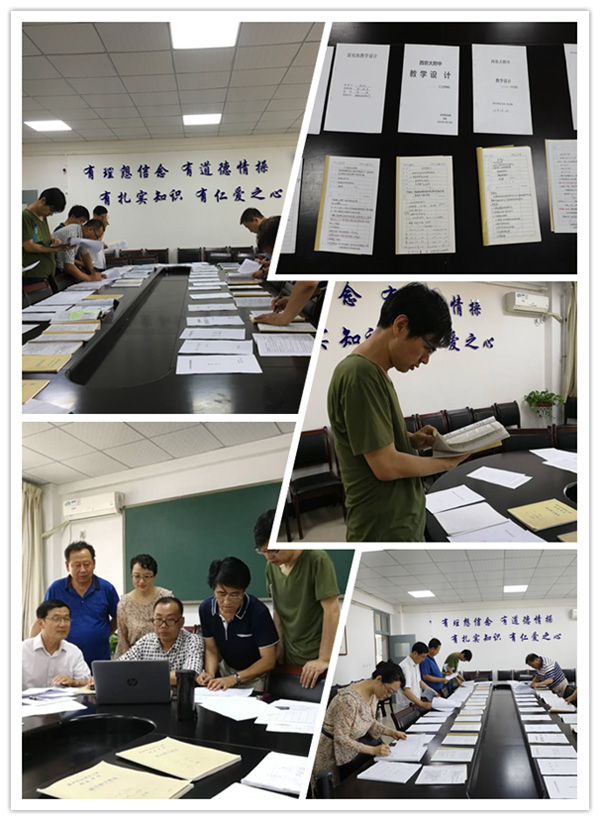 六月附中,硕果累累,精彩纷呈。教研活动更是百花齐放,独秀一枝。2018年6月21日,我校教研室按照计划在高中部一楼会议室举行了“手写教案展评” 、“教学设计展评”和“原创教学课件展评” 三项活动。张书民副校长、初高中教务主任及全校教研组长参加了评选。
