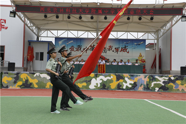8月26日,我校2018级新生军训总结大会在陕西征程国防教育基地举行。大会由军训基地杨健参谋长主持,我校王常劳校长、韩党卫书记等校领导及军训基地何银平主任出席,1000余名高一、初一新生及班主任参加大会。经过七天的紧张训练,我校2018级新生圆满完成了各项军事训练任务,用精彩的汇报演出为军训画上了圆满的句号。