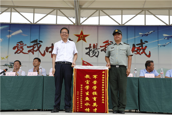 会上,军训基地何银平主任宣读了对优秀士兵及先进连队的表彰决定,我校校领导为获奖人员颁奖。刘杰副校长代表学校为军训基地颁发锦旗。