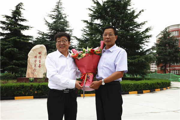 在会议室,吴普特校长为何文艳、张满户两位教师代表送上了鲜花,并为附中全体教师带来了节日的祝福。