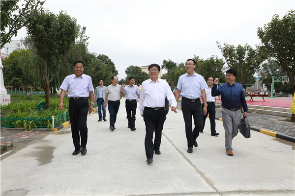 在王常劳校长、韩党卫书记等陪同下,吴普特校长查看了附中新建的田径场、篮球场和在建的校园文化建设项目,对附中校园环境的美化表示赞赏。