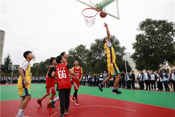 此次球类运动会为期两天,包括篮球、足球、定点投篮、羽毛球、乒乓球、跳小绳、踢毽球等项目,初一——高二等五个年级学生参加比赛。