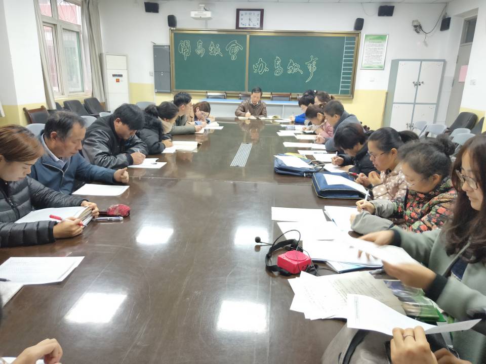 11月14日下午,初一、初二年级组分别召开了期中考试质量分析暨后期工作安排会。张书民副校长、教务处王联科主任、李玉霞副主任、教育处方凯副主任及初一、初二年级组全体教师参加了会议。