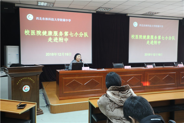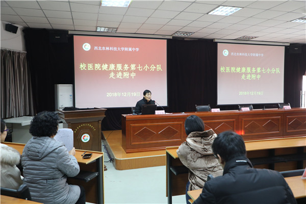 12月20日,大学校医院健康服务第七小分队走进我校,为我校教职工开展健康知识讲座与义务诊疗活动。活动由韩党卫书记主持。