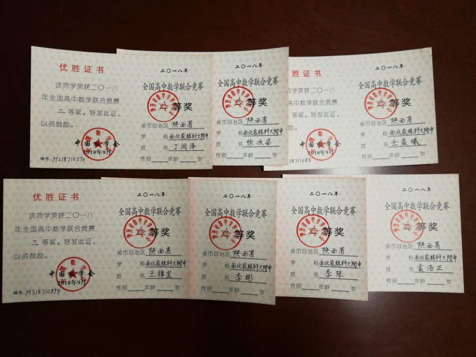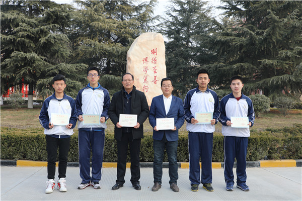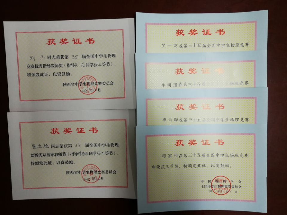 继全国化学竞赛获奖后,近日,我校学生又在第35届全国中学生物理竞赛及全国高中数学联合竞赛中斩获奖项。丁润泽同学获数学竞赛省级二等奖,王樟宜、李琴、李彬、徐冰姿、袁浩正、仝晨曦等6名同学获数学省级三等奖,段同建、李智峰老师荣获优秀指导教师奖;吴一龙、毕云晔、穆家和、牛明瑾等4名同学获物理竞赛省级三等奖,刘杰、崔立强老师荣获优秀指导教师奖。