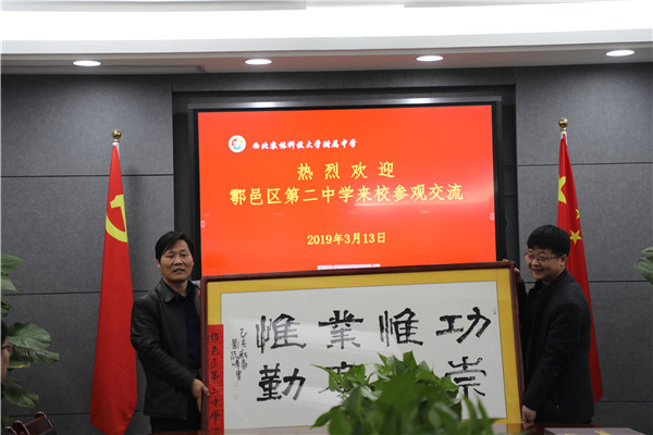 3月13日,鄠邑区第二中学赵亚卫校长、李向明副校长一行来我校参观交流。