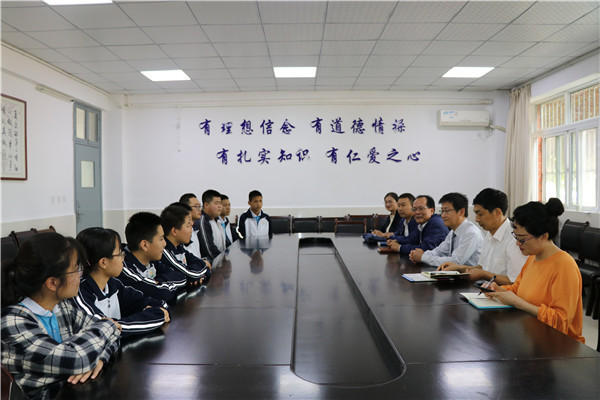 何国柱校长一行对我校校园建设、教学管理、食堂管理等情况作了深入了解,在会议室里,双方就办学理念、校园文化建设、教师队伍建设、高中教学管理等方面进行了探讨与交流。两校领导均表示,今后将进一步加强沟通与交流,相互学习,共同提高。