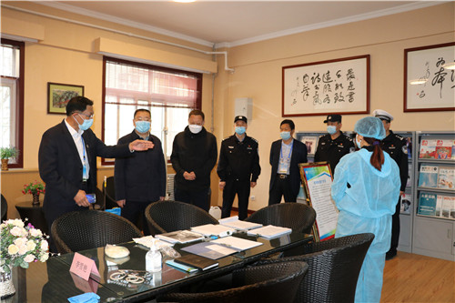马卫东局长、张少文局长一行先后来到测温点、教学楼、隔离室、食堂等处,听取学校复学准备工作汇报,实地查看防疫物资储备和防控措施落实情况。