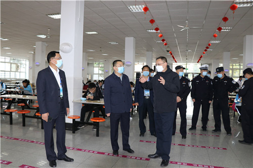 4月13日,我校非毕业年级学生结束了漫长的假期生活,正式开启到校上课模式。至此,附中近3000名学生全面复学。复学当日,示范区公安局马卫东局长与示范区教育局张少文局长来我校检查开学工作。