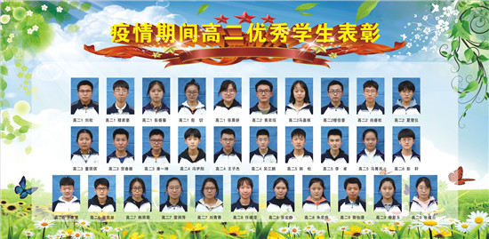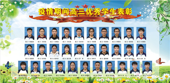 为落实学校疫情防控的各项工作要求,深入贯彻“停课不停学,离校不离班”的精神,根据学生居家隔离综合表现,我校教育处利用班会课、展板于4月20日对表现优异的学生进行了表彰。