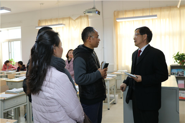 “欢迎各位家长的到来!请大家多提意见和建议,附中的门一直向大家敞开!”11月16日,在我校家长会上,校领导们深入各个班级,与家长们真诚交流学生的成长建议。