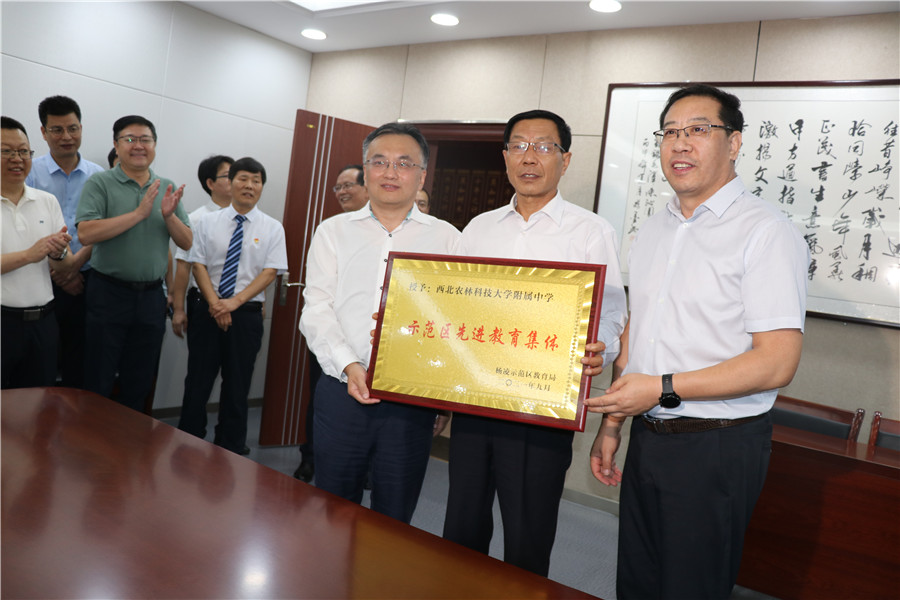 四、重视支持 优质发展。陕西省委教工委书记王建利、厅长刘建林来校调研,大学李兴旺书记、吴普特校长、杨凌示范区党工委书记黄思光等慰问教职工,教育局和大学部门有力支持,学校优质化发展进入快车道。