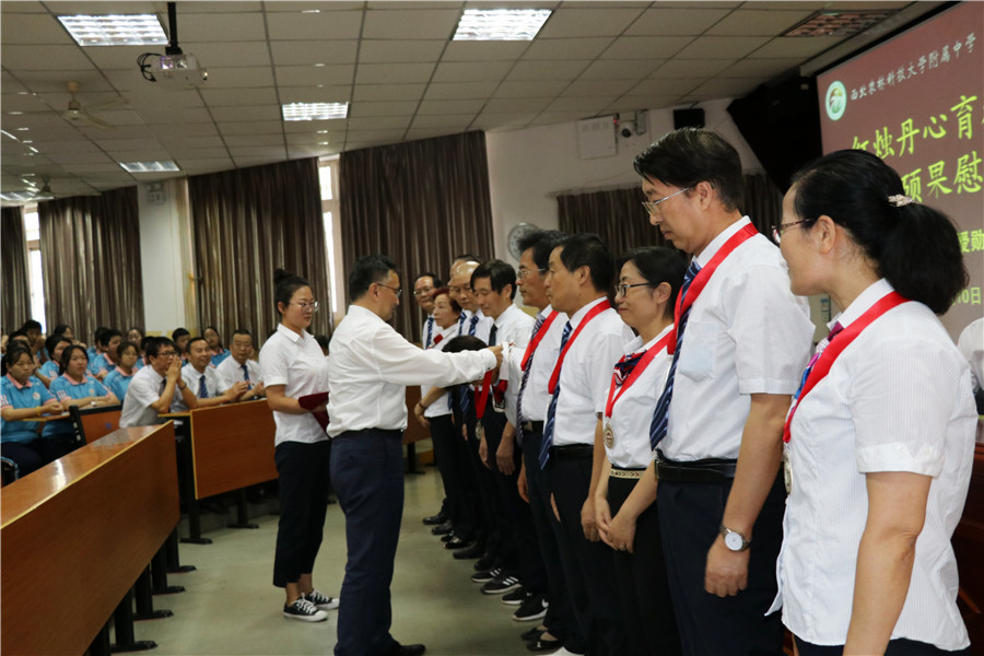 五、队伍建设成效显著。实行重大事项师德专项考核制度。创造条件,解决部分教师入编问题;吸纳了13名高校优秀毕业生,进一步优化了教师年龄结构;为教师授勋,激发了广大教职工教书育人的积极性。
