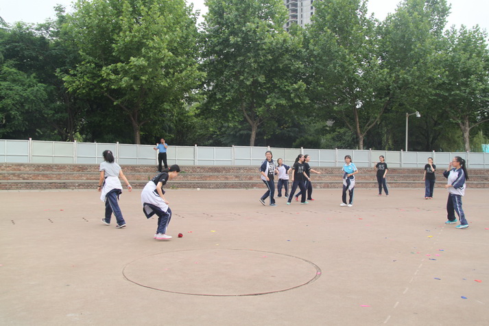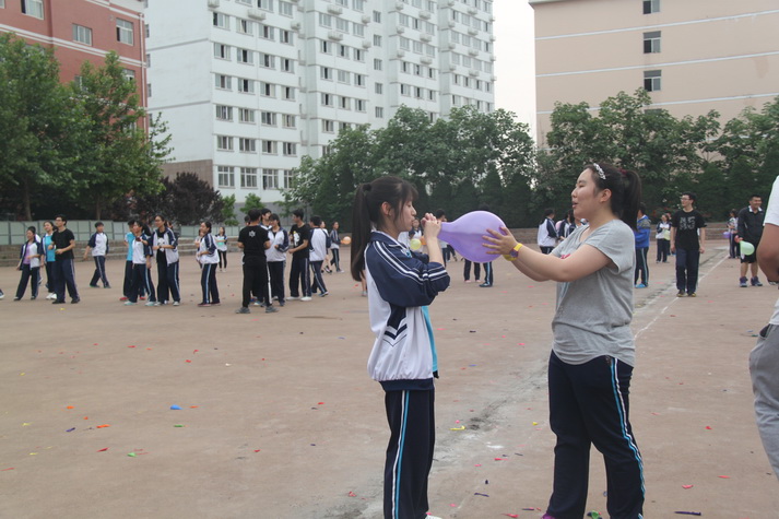 第七节课后高三师生准时在操场集合,先由担任裁判的学校体育组老师宣布活动规则以及比赛项目。有沙包掷准、吹气球、跳大绳、踢毽子、足球射小门、篮球运球等项目,一人可参加多项。