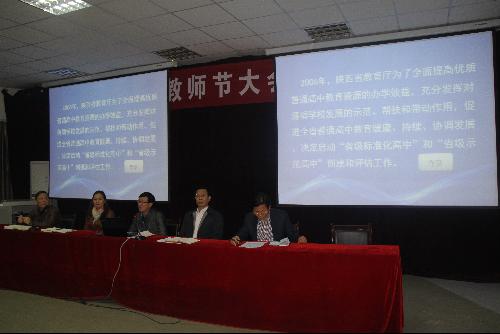 10月12日,我校在多功能厅召开全体教职工大会,总结前期工作并正式启动示范校创建工作。大会由张书民副校长主持,王常劳校长、李筱英书记、韩党卫副校长出席大会。