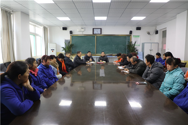 2月2日下午,我校总务处全体工作人员在初中部一楼会议室召开工作总结会,张书民副校长出席并讲话。