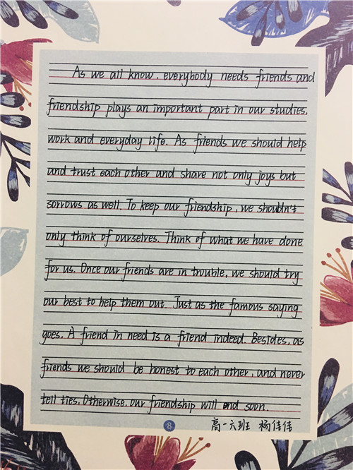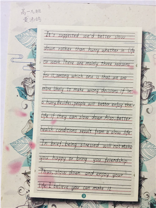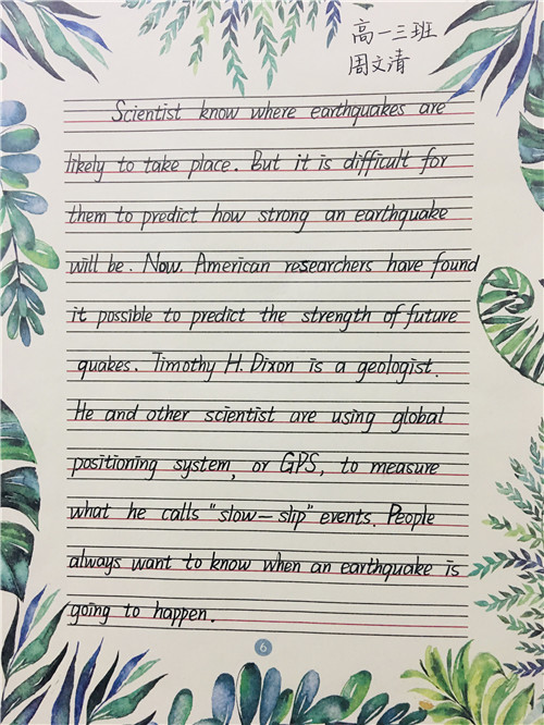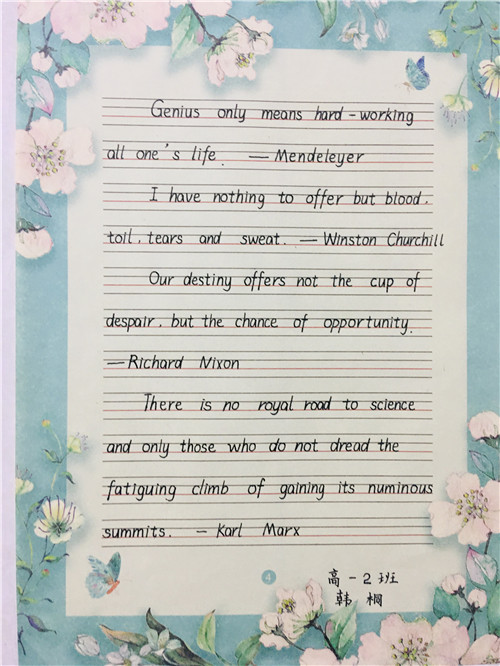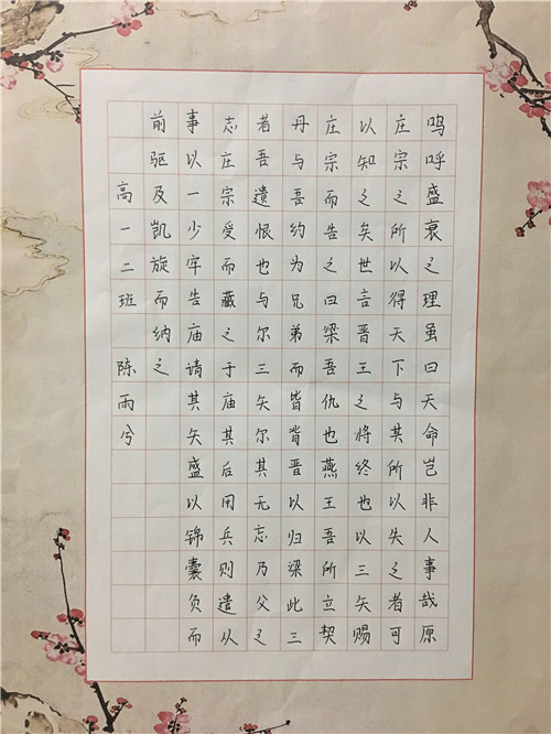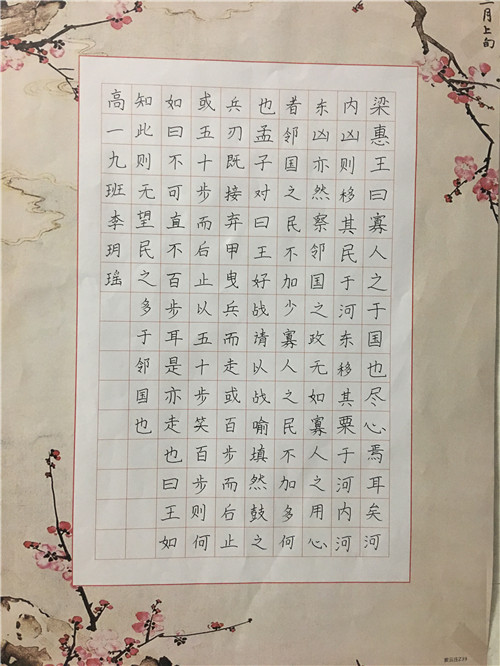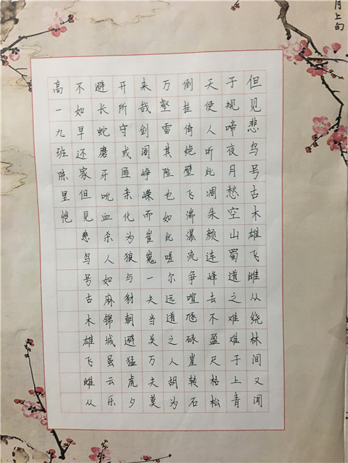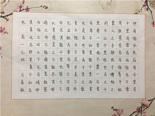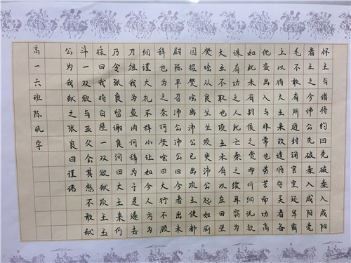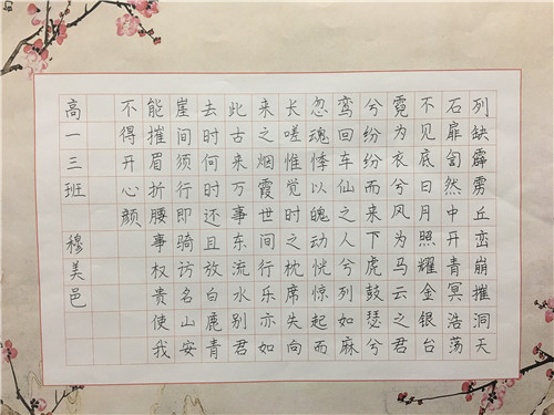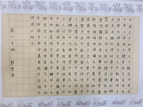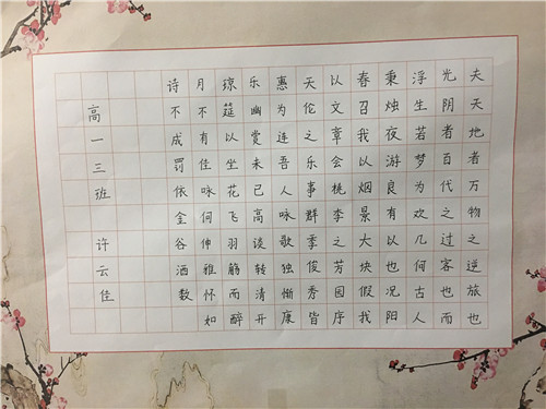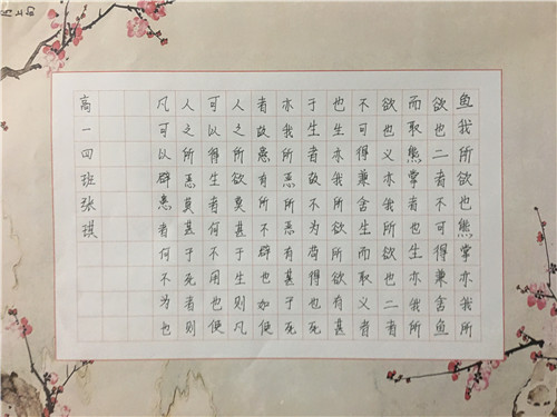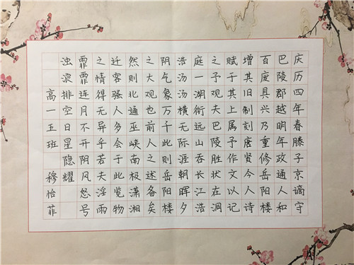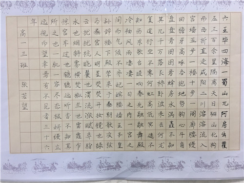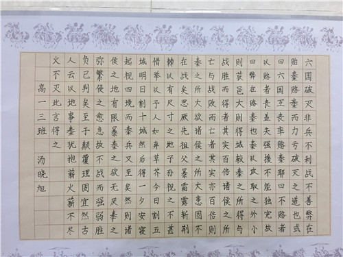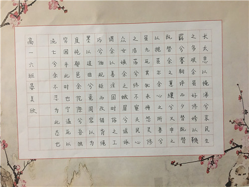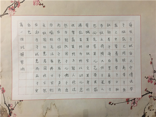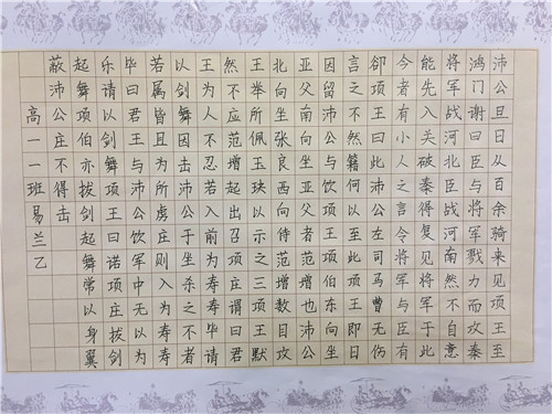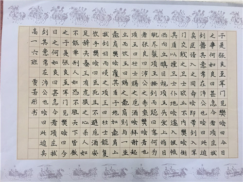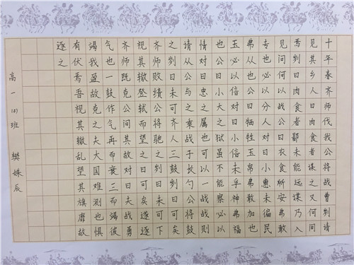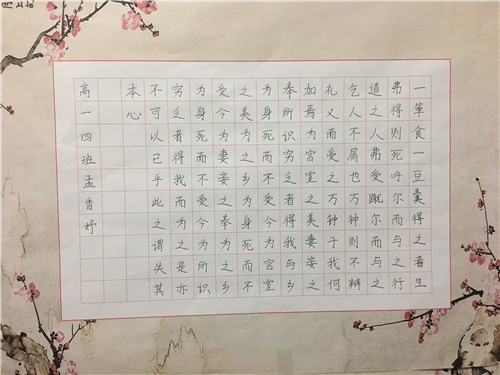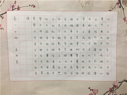 为进一步提高中学生书写水平,弘扬中华民族传统书法艺术,近日,高一年级举行硬笔书法比赛。