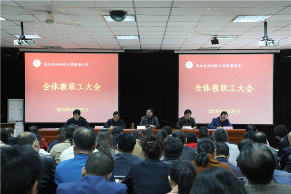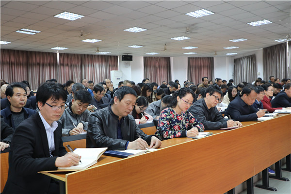 3月27日,我校召开全体教职工大会,学习中央文件精神并安排部署学校工作。
