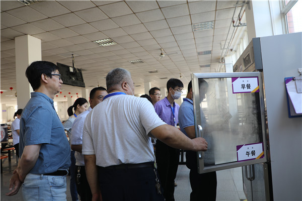 督察组一行认真听取了我校餐厅负责人关于食品安全工作的汇报,查看了相关安全制度及安全检查记录等材料,并深入食品加工间、烹饪间、洗消间、原材料处理间等场所进行实地检查,对食堂环境卫生、食品营养健康、安全卫生监管、从业人员管理、餐具消毒、食品留样及原材料采购、贮存、加工、安全生产等各个环节进行了重点检查。