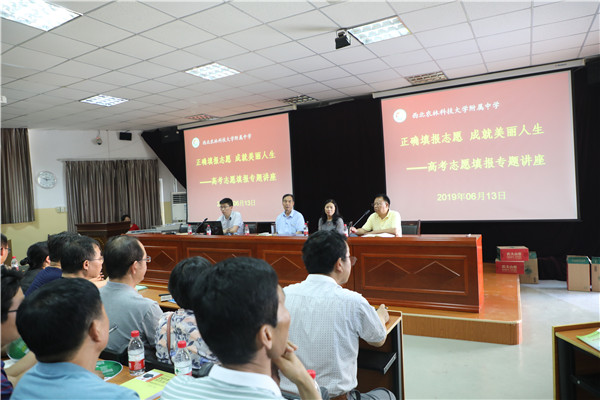 为了帮助我校2019年参加高考的考生科学填报志愿,6月13日,我校在多功能厅举办高考志愿填报专题讲座。讲座由西北农林科技大学工会主办,我校协办,500余名家长及考生参加。