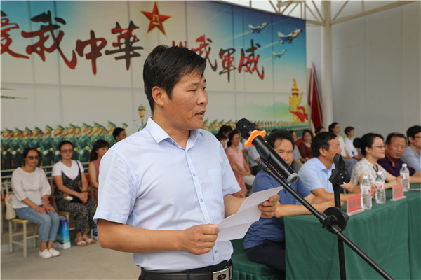 开营仪式上,韩党卫书记作动员讲话。他对初一、高一新同学的到来表示热烈的欢迎,并希望在接下来的军训中同学们要以高昂的斗志、饱满的热情全身心投入到此次社会实践活动中去,并以此为契机,增强集体主义意识和组织纪律观念,磨练意志,培养吃苦耐劳的精神。