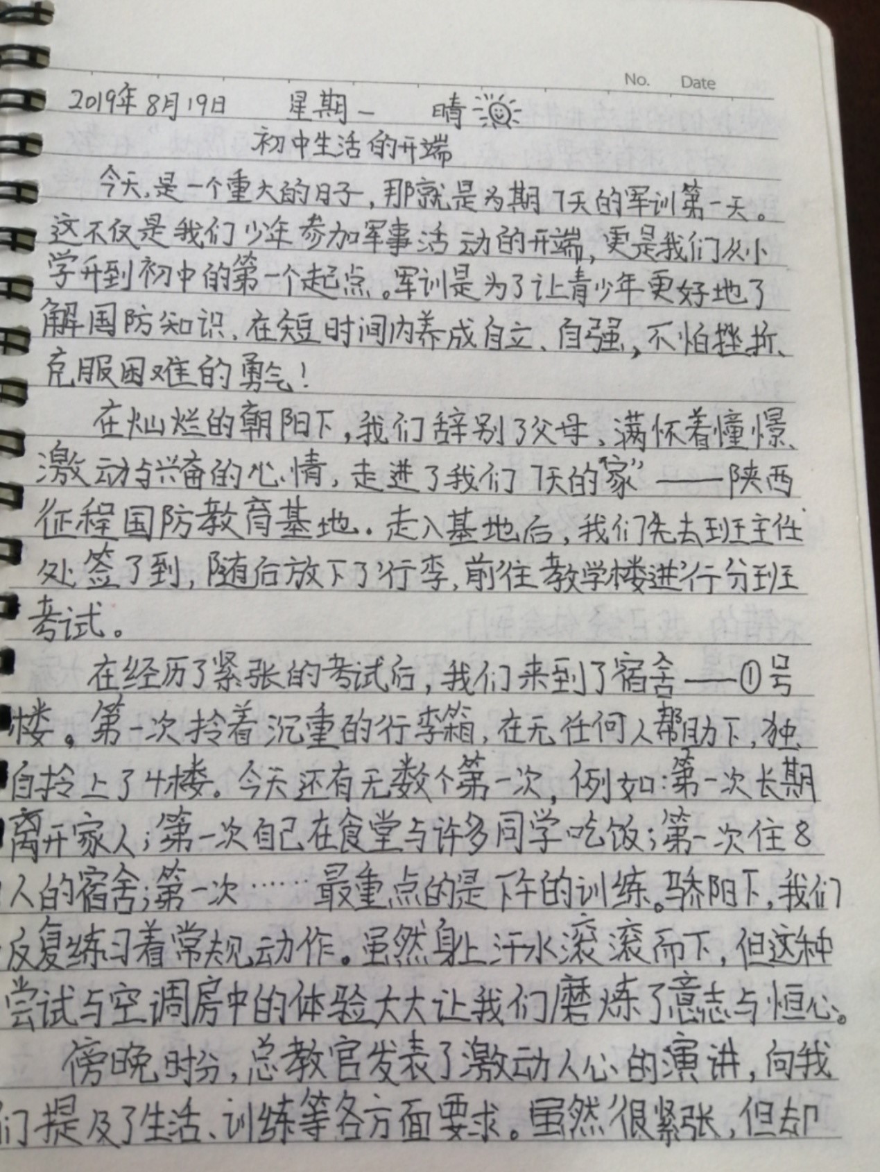 军训快接近尾声了。在这段日子里,他们有痛苦,有辛劳,但更多的是收获,是成长。正如一位同学在日记中写道:“在以后的日子里,我会愈战愈勇,不言弃。加油吧!少年!”