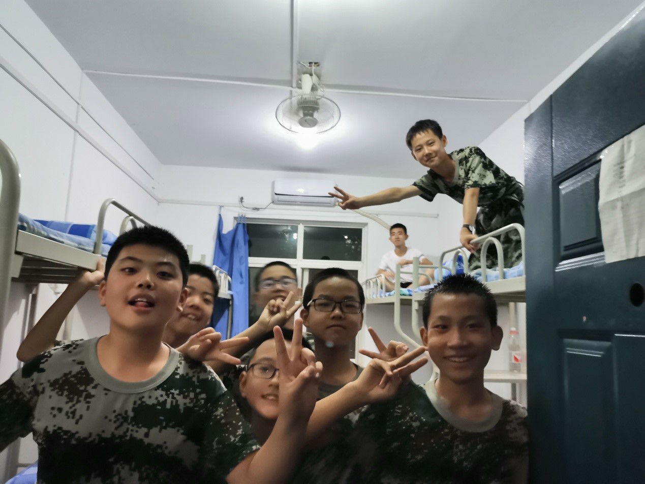 除了训练场上的顽强拼搏,内务整理也是训练中不可缺少的一部分。对于不常做家务的同学来说,如何叠出像“豆腐块”一般的被子,是一个大的挑战。有的同学叠的像上短下长像“坦克”,有的叠的像“豆腐渣”,有的鼓的像“馒头”。在教官们的耐心指导下,同学们叠的被子终于变得有模有样。学会叠被子的同时,同学们也都懂得了父母的辛劳,变的更懂事了。