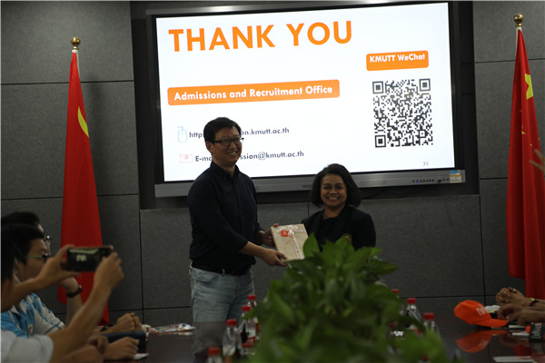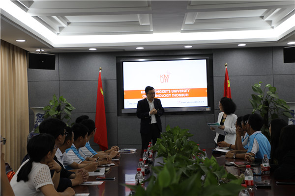 泰国国王科技大学副校长Pornapit Darasawang 及Chaowalit Limmaneevichitr介绍了泰国的风土人情、气候、风俗习惯和泰国国王科技大学的办学特点、校园建设、学科优势及学生培养等方面情况。招生办公室学科服务专员Kittipong Phaeruangrat介绍了留学生的招生情况、奖学金计划、训练营申请等情况。