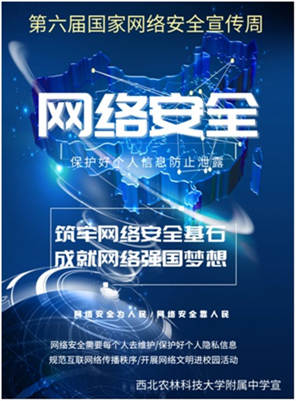 9月16日至22日是国家网络安全宣传周,为深入学习贯彻习近平总书记关于网络强国的重要思想,提升我校师生网络安全意识,提高抵御校园网络安全风险能力,西农大附中在本周开展了以“网络安全为人民,网络安全靠人民”为主题的网络安全宣传教育活动。