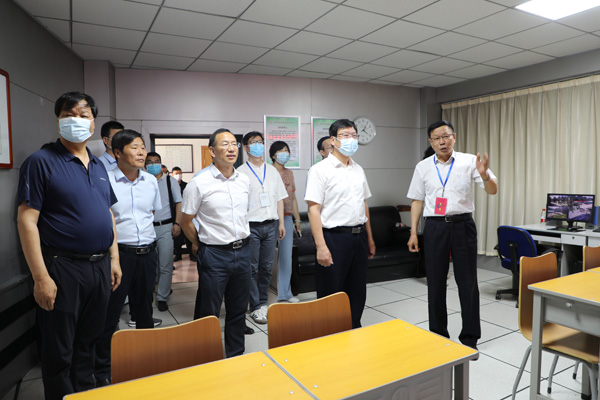 董立民、闫祖书、李朝喜等领导首先视察了我校监控室、语音室,查看了高考监控系统和语音播放系统准备情况,又来到考场和防疫物资储备室等,详细了解了疫情防控、考场设置、电力保障等情况。在听完我校校长王常劳的汇报后,董立民、闫祖书、李朝喜等领导指出,高考事关千家万户的切身利益和广大考生的前途命运,是全社会关注的大事。各相关单位和部门要高度重视,通力合作,进一步落实责任,加强管理,做细做实保障和服务工作,为考生营造安全安心安静的考试环境,确保高考顺利平稳进行。