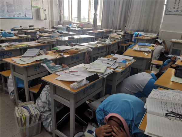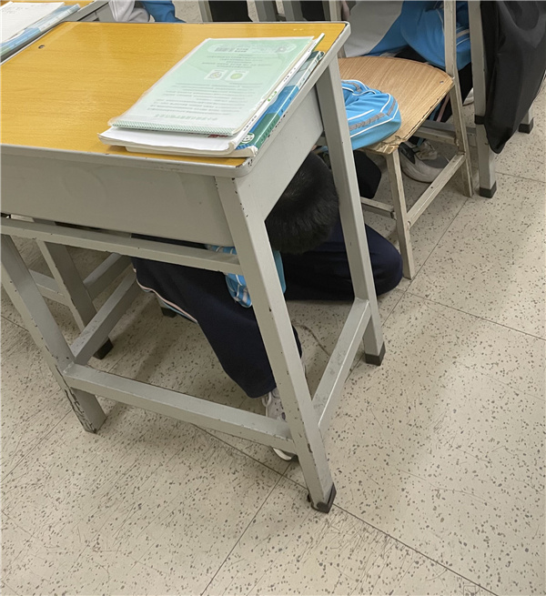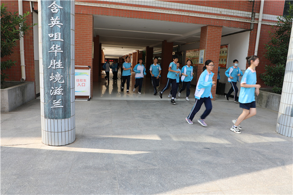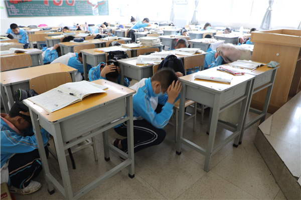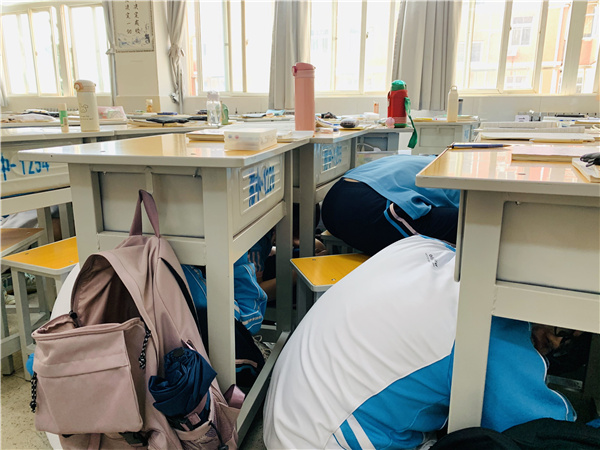 上午10时,演练正式开始。“全体师生请注意,现在发生了地震,请大家不要慌张,听从指挥,马上进行紧急避险……”随着警报响起,老师们迅速组织学生避险,学生们立即进入紧急避险自救状态,第一时间找掩体,随后弯着腰,沿着楼梯快速前进,有序撤离到学校操场的安全地带。到达操场后,各班级立即清点人数并逐级汇报。整个演练过程紧张有序,3000余名师生全部安全撤离。